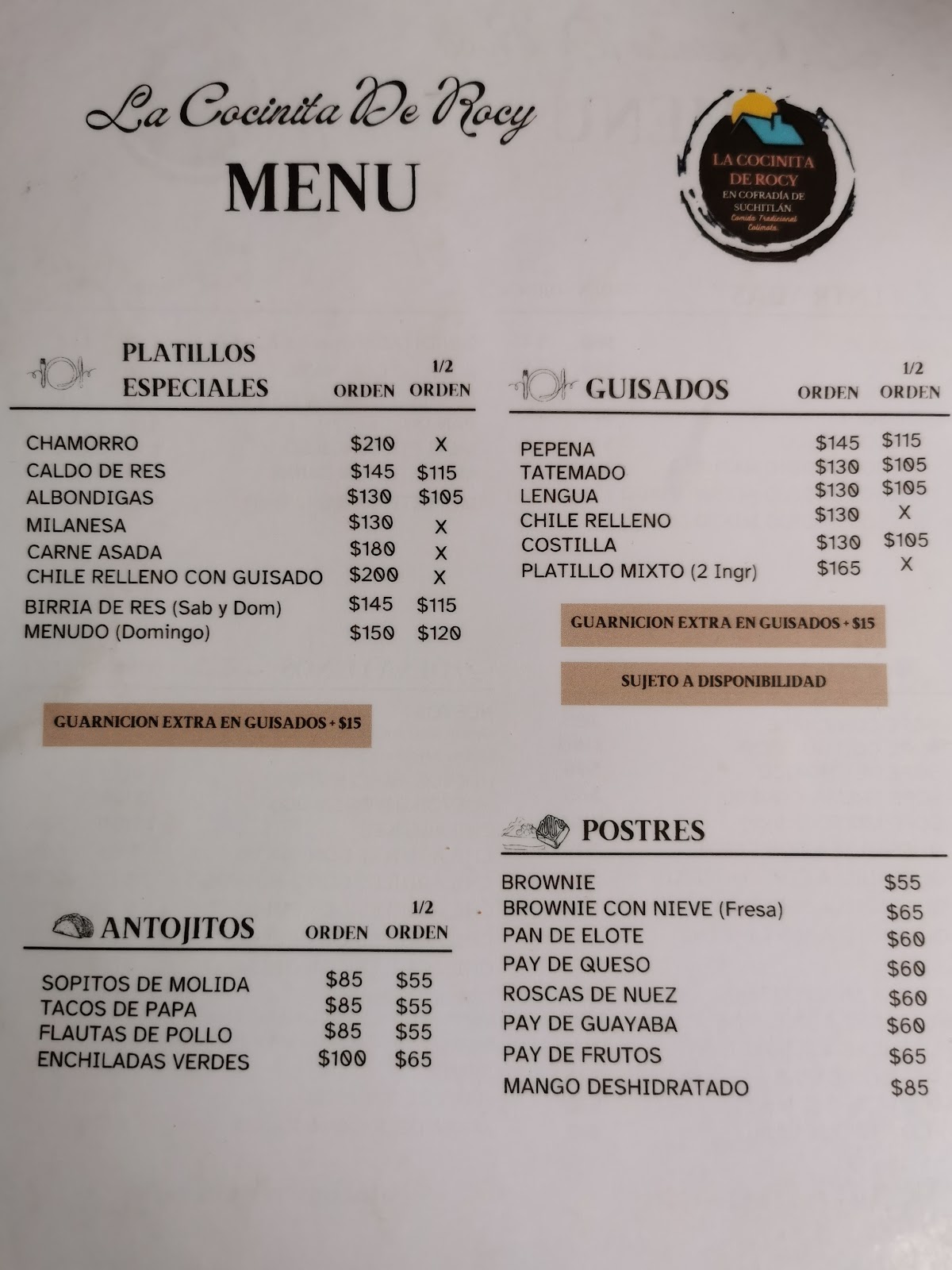 📞 312 339 2203 🌐 https://lacocinitaderocy.wixsite.com/menu