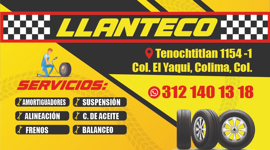 Llanteco Colima es un taller de reparación de automóviles ubicado en C. Tenochtitlán 1154-1, El Yaqui, en la ciudad de Colima. Reconocido por su excelente atención y servicio, este punto de referencia local ofrece soluciones confiables para el mantenimiento y reparación de vehículos. Con un enfoque profesional y personalizado, Llanteco Colima se dedica a garantizar la satisfacción de sus clientes mediante trabajos de alta calidad y atención detallada. Su ubicación estratégica facilita el acceso para quienes buscan un servicio rápido y efectivo en la región. Además, cuenta con una calificación perfecta de 5 estrellas en Google, basada en las opiniones de sus clientes, lo que refleja su compromiso con la excelencia. Llanteco Colima es la opción ideal para quienes valoran un servicio técnico experto y un trato amable en el área de Colima. Para más información, los interesados pueden contactar al teléfono 312 201 7504 o visitar su página oficial en Facebook.