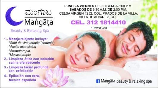 Mangata Depilación Beauty & Relaxing Spa is a well-established beauty salon located in Cdad. de Villa de Álvarez, specializing in waxing and comprehensive skin care. Situated at Profra. Celsa Virgen 252, Prados de la Villa, this spa offers a unique experience combining beauty treatments with a relaxing and professional atmosphere. With a 4.9 out of 5 rating based on 17 reviews, Mangata stands out for its friendly, personalized attention and high-quality services. Beyond waxing, they provide a wide range of treatments including hair care, manicures, and pedicures, tailored to each client’s needs and preferences. Their trained staff ensures respectful and reliable service, perfect for those seeking effective results in a comfortable and safe environment. To book an appointment or learn more about their promotions, you can contact them at 312 309 4106 or visit their Facebook page. Mangata Depilación Beauty & Relaxing Spa is the ideal choice for those who value quality and professional care in every detail.