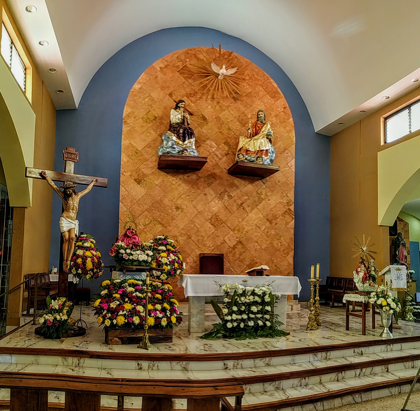 The Parish of the Holy Trinity, located at Comala 41, Adolfo López Mateos, in the city of Villa de Álvarez, Colima, is a prominent place of worship and a key point of interest for the local community. With a Google rating of 4.7 out of 5 from 134 reviews, this church is recognized for its accessibility, featuring ramps and stairs that accommodate visitors with mobility challenges. The altar, modest yet meaningful, serves as the focal point for services currently led by Father Osiris. The parish holds a youth mass at 7:00 pm and hosts a youth group meeting every Thursday at 8:00 pm in the parish hall, promoting active spiritual and community engagement among young people. Parking is available around the garden, providing convenient access to this religious landmark. The Parish of the Holy Trinity is an inviting and open space for reflection, prayer, or to simply explore a significant site within the López Mateos neighborhood.