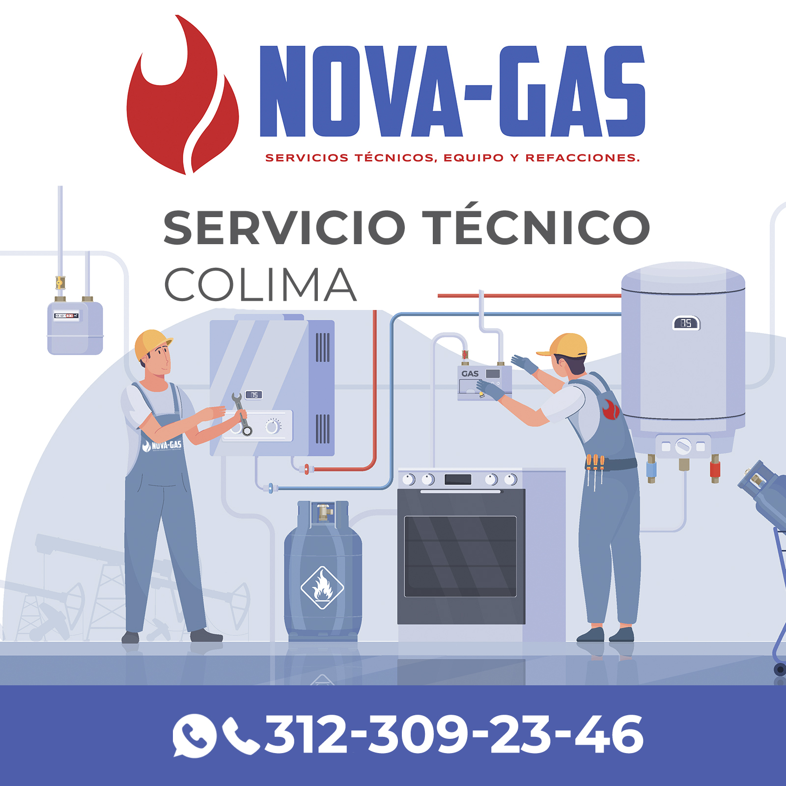 Reparación y Mantenimiento estufa, boiler, calentador, fuga de gas Colima -Nova-Gas- servicios técnicos, equipo y refacciones