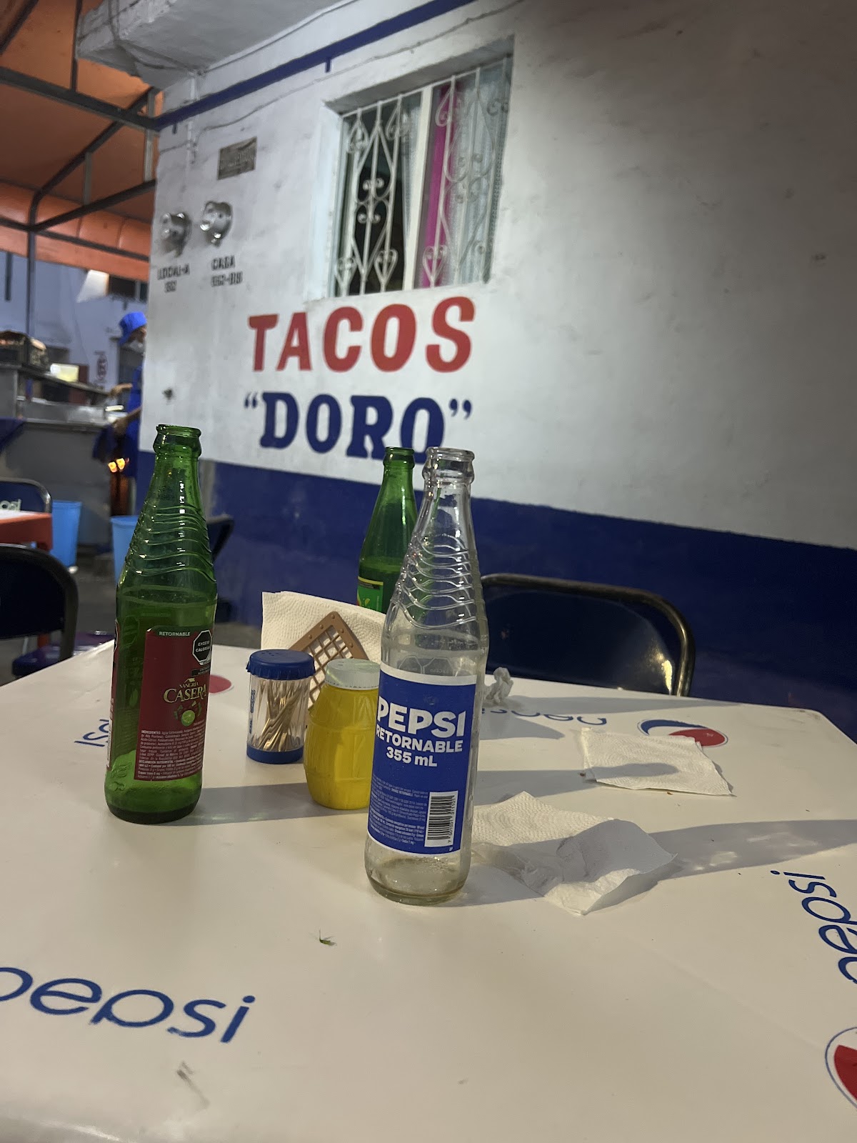 Tacos Doro es un restaurante emblemático ubicado en la ciudad de Colima, reconocido por sus deliciosos tacos que han conquistado a locales y visitantes por igual. Con una calificación de 4.5 sobre 5 basada en más de 400 reseñas, este establecimiento es un punto de referencia para quienes buscan auténticos sabores mexicanos. Su menú se centra en dos tipos de tacos principales: adobada y res, preparados con carne de calidad y acompañados de frijoles, cebolla, cilantro y lechuga, lo que garantiza una experiencia gastronómica sencilla pero satisfactoria. El ambiente es modesto y acogedor, ideal para disfrutar de una comida rápida y tradicional. Los clientes destacan la calidad de la carne y el sabor auténtico que ofrece cada taco, convirtiendo a Tacos Doro en una parada obligatoria para quienes aprecian la comida local en Colima. Para más información, reservas o ubicaciones, puede visitar su sitio web oficial en directoriocolima.com o comunicarse al teléfono 18005556677.